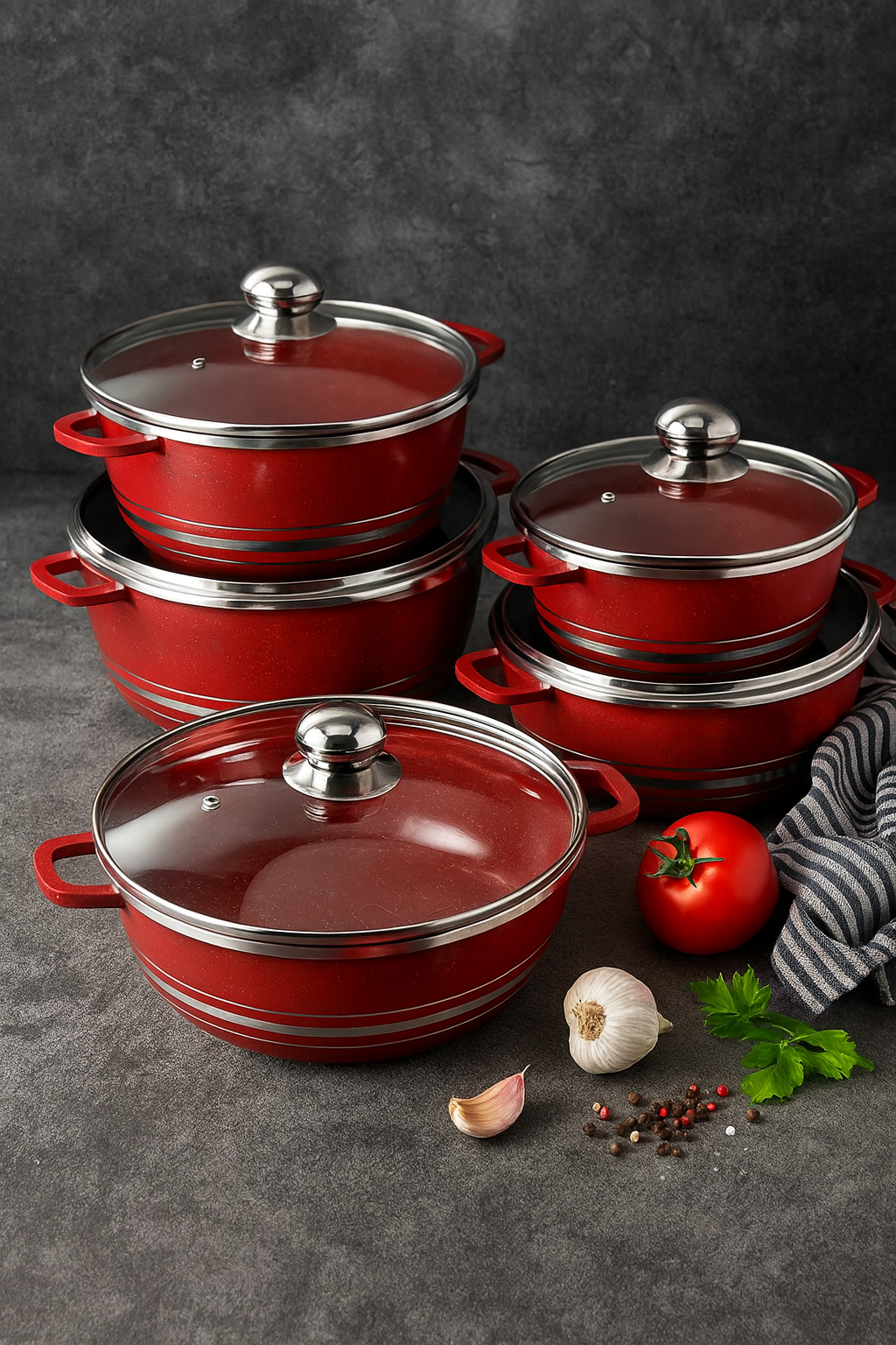 Deze luxe 5-delige pannenset bestaat uit verschillende maten kook- en braadpannen, allemaal uitgevoerd in een opvallend rood design met glanzende... Lees meer