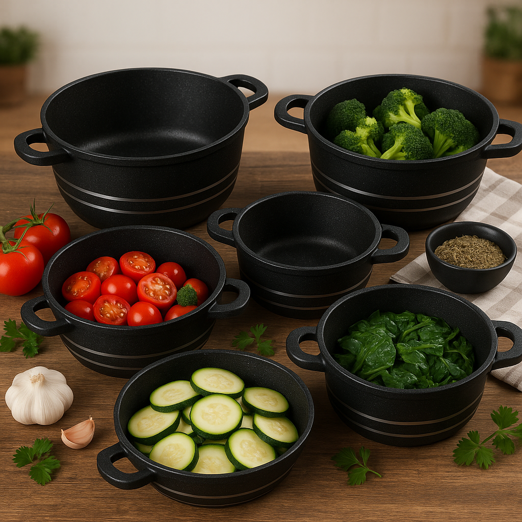Luxe 5-delige zwarte Pannenset met Glasdeksels – Duurzaam & Stijlvol